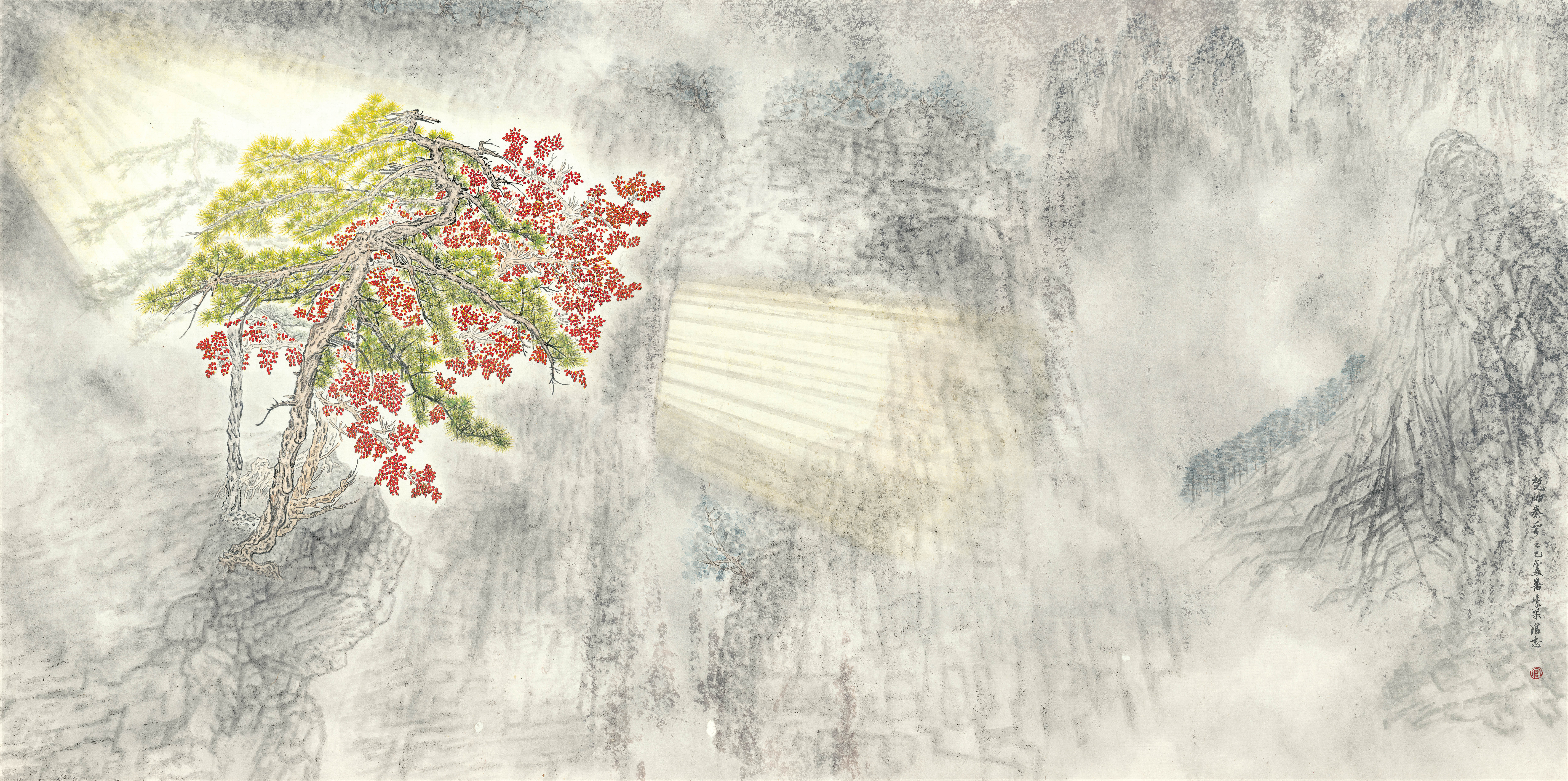 然而,山水并非仅是绘画或对风景的描述,它是艺术家对卓越的自然现实的感悟和回应。写实不是山水画的目标,山水画更多追求艺术家与自然意境悠远的相遇邂逅,将这种体验转译为创造性的笔耕过程,包括美学形式、色调、平衡与和谐。